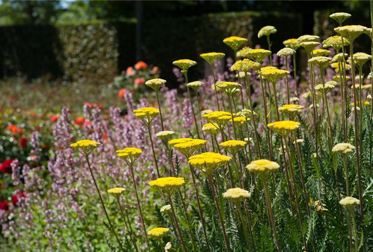 In weiß erstrahlen der Gartenjasmin, die Prachtspiere, aber auch manche Strauchrosen und natürlich Margeriten. Aber natürlich können Sie sich Ihre Stauden in allen erdenklichen Farben aussuchen.