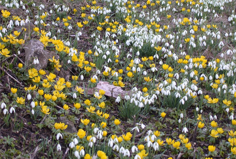 Winterlinge verkünden den Frühling. Sie blühen schon ab Februar auf und bringen Farbe in den winterlichen Garten. Ein gelbes Bütenmeer voller Frühlingsgefühle!