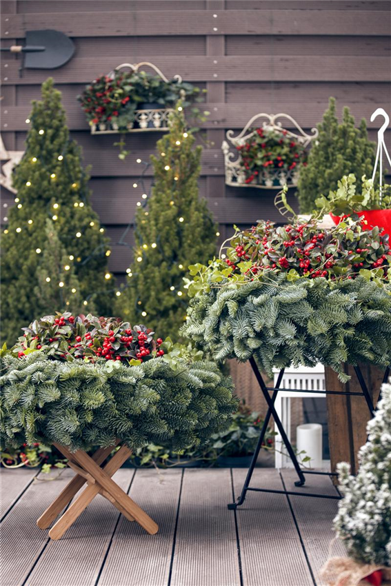 Um einen klassisch Adventskranz aus immergrünen Zweigen zu binden werden frisches Tannengrün (oder andere immergrüne Zweige), ein Kranzrohling (z. B. aus Stroh, Papier …), grüner Bindedraht und eine Gartenschere benötigt. Wer empfindliche Haut hat, sollte zum Binden Garten- oder Einmalhandschuhe bereithalten. Je kleiner der Durchmesser des Kranzes ist, umso kürzer sollten die Zweige sein, damit sie später nicht abstehen. Dann ist zu überlegen, ob es ein frei hängender oder ein liegender Adventskranz werden soll. Bei letzterem reicht es aus, wenn drei Viertel des Kranzes mit Zweigen bedeckt wird. Das heißt, die Unterseite des Kranzes kann frei bleiben. Dicht an dicht werden schuppen- bzw. dachziegelartig die Zweige Reihe um Reihe um den Kranz gelegt und mit dem Bindedraht fest umwickelt. Dabei immer gut anziehen damit später beim Trocknen die Zweige nicht herausrutschen. Wer mag kann direkt beim Binden die möglichen Materialien zur Dekoration mit einarbeiten. Allerdings sollte für die vier Kerzen noch genügend Platz bleiben.