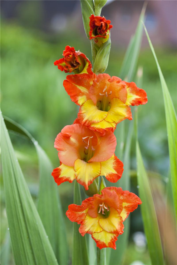 Wie an einem Schellenstab ragen die Blüten der Gladiole an aufrechten Stielen empor. Ihrer Blütenform hat die Gladiole den Beinamen „Schwertblume“ zu verdanken. Das eindrucksvolle Bild präsentiert die Gladiole ausdauernd von Juni bis Oktober. So robust sie auch sein mag: Den Winter übersteht sie nicht im Garten. Im Herbst zieht sich die Pflanze in ihre Knolle zurück – und die können Sie überwintern.