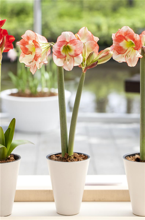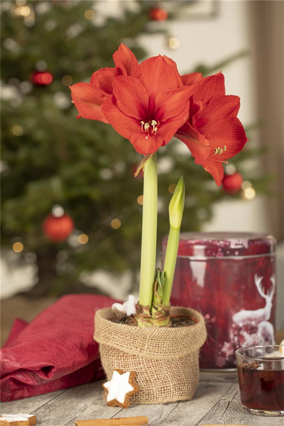 Amaryllis im Topf können Sie leicht zum Blühen bringen. Sorgen Sie für eine ausreichende Drainage und pflanzen Sie die Zwiebel so, dass sie ein Drittel über den Boden herausragt. Gießen Sie zu Beginn nur wenig und möglichst nicht direkt auf die Zwiebel. Sobald sie austreibt, braucht die Amaryllis mehr Wasser. Ihre Blüte hält die Blumenzwiebel länger, wenn sie kalt steht. Als Trockenzwiebel brauchen Amaryllis und Herbstzeitlose kein Wasser und keine Erde. Sie haben so viel Energie in ihrer Zwiebel, dass sie einfach so aufblühen. Legen Sie sie auf eine Schale mit Moos oder Steinen und sorgen Sie so für einen Überraschungseffekt auf der Fensterbank! Auch im Wasserglas kann man Amaryllis ziehen. Sehr bekannt sind hierfür auch Hyazinthen. Diese legen Sie in ein so genanntes Hyazinthenglas. Dessen besondere Form sorgt dafür, dass die Zwiebel knapp über dem Wasser aufliegt, aber nicht darin versinkt. So können die Wurzeln dem Wasser entgegenwachsen und wenn sich die Blütenknospe vollständig entwickelt hat, löst die Hyazinthe im Wohnzimmer Frühlingsgefühle aus!