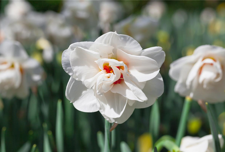 Weiße Narzissen und Tulpen sind eine wunderbare Kombination für den Frühling auf dem Balkon. Zwischendrin ein schönes Gras oder etwas Efeu sorgt für die nötigen Ruhezonen. Ohne das Highlight Stiefmütterchen kommt man kaum aus. Ein reizvolles Duett entsteht zusammen mit seiner Doppelgängerin, dem Hornveilchen, das freilich viel länger blüht. Drei Farb-Kompositionen zusammenstellen, und damit ist der Frühling auf dem Balkon angekommen. Primeln bieten sich für eine kleine, aber feine Unterbepflanzung an. Duftveilchen und Vanilleblumen bedienen die Freude am Geruchssinn.