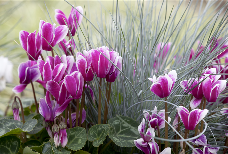 Am bekanntesten sind die Alpenveilchen als Topfpflanze für die Wohnung. Hier blühen sie in vielen Farben und erfreuen auch in der kalten Jahreszeit ihren Besitzer. Doch auch nach draußen dürfen sie gepflanzt werden – jedoch sind die üblichen Hybriden nicht winterhart und daher nur im Sommer für den Garten geeignet. Allerdings gibt es besondere Arten, die selbst harte Fröste überdauern. Dazu zählt beispielsweise das Anatolien-Alpenveilchen. Wer diese Kulturart bevorzugt, sollte möglichst kleine Knollen aus Kulturbetrieben kaufen und am Standort nicht den Boden aufhacken. So bilden die Alpenveilchen nach einer Weile dicke Teppiche mit herrlichen Blüten.