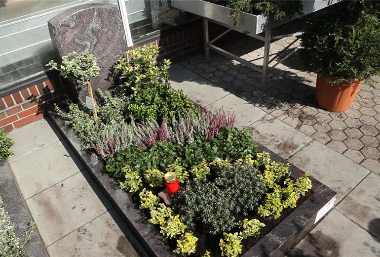 Im Mai bekommt das Grab seine Sommerbepflanzung